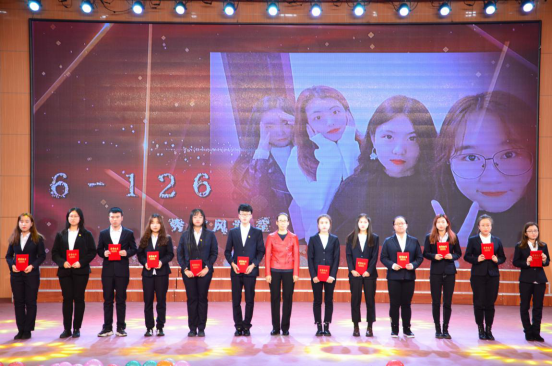 由团总支书记刘丽娟老师宣读《关于表彰伟德体育2018-2019年度先进集体和个人的决定》。党总支书记韩超老师,党总支副书记王子鸣书记,团总支书记刘丽娟老师,员工党支部书记彭传杰老师为获奖同学颁奖。